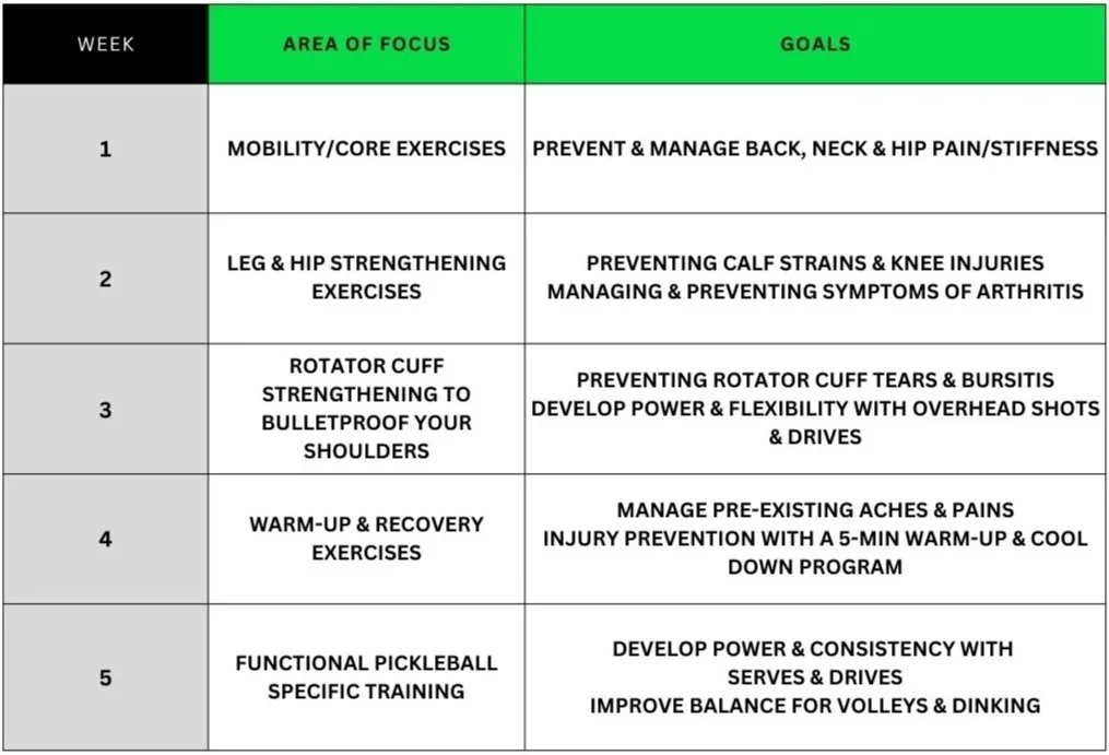 The Pickleball 5 Week Program has been created by Tweak Physio’s very own Physio Thomas, an avid Pickleball player who has competed at a National level and is a qualified Pickleball Coach.
